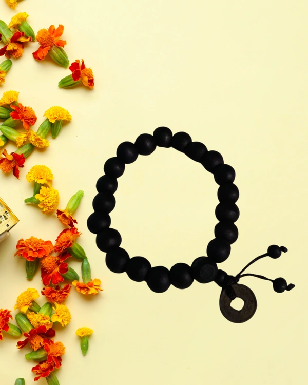 Wear serenity on your wrist with this beautifully handcrafted black wooden bracelet.