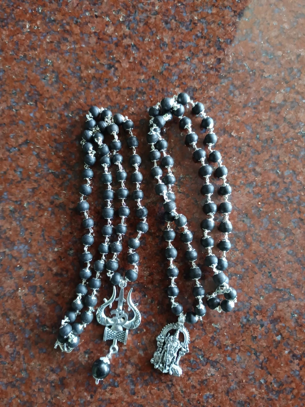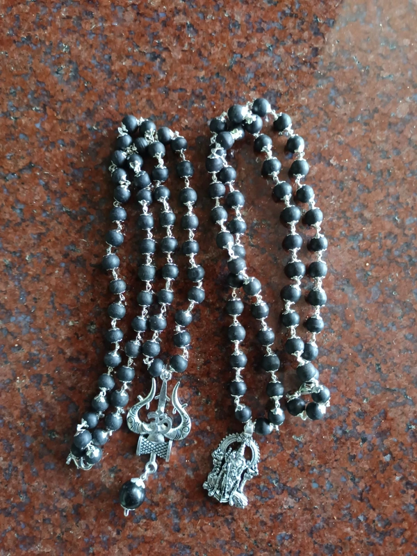 Karungali Mala Silver Colour Combo Pack - 1 Mala with Thrishul Locket & 1 Mala With Lord Muruga/ Karthikeya Locket