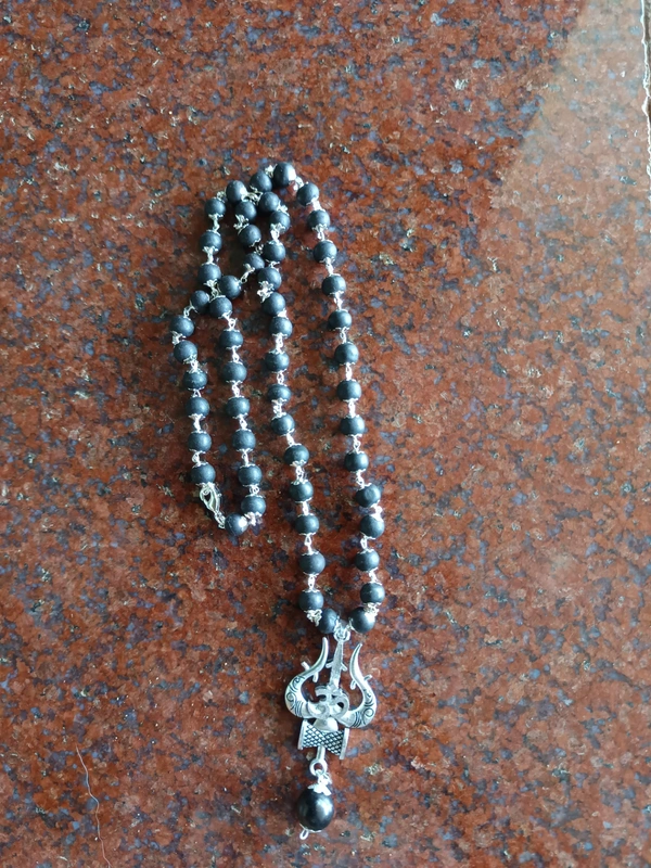 Karungali Mala Silver Colour Mala with Thrishul Locket