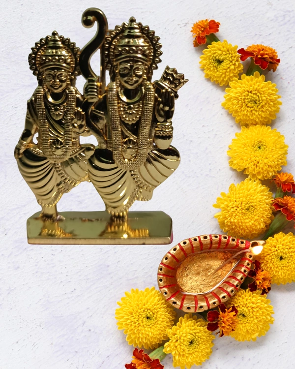 Made from high-quality, rust-resistant metal, the statue showcases Lord Ram and Sita in a graceful seated posture, often accompanied by Lord Lakshman and Hanuman. Its durable and elegant design makes it ideal for daily devotion and divine protection on the go.